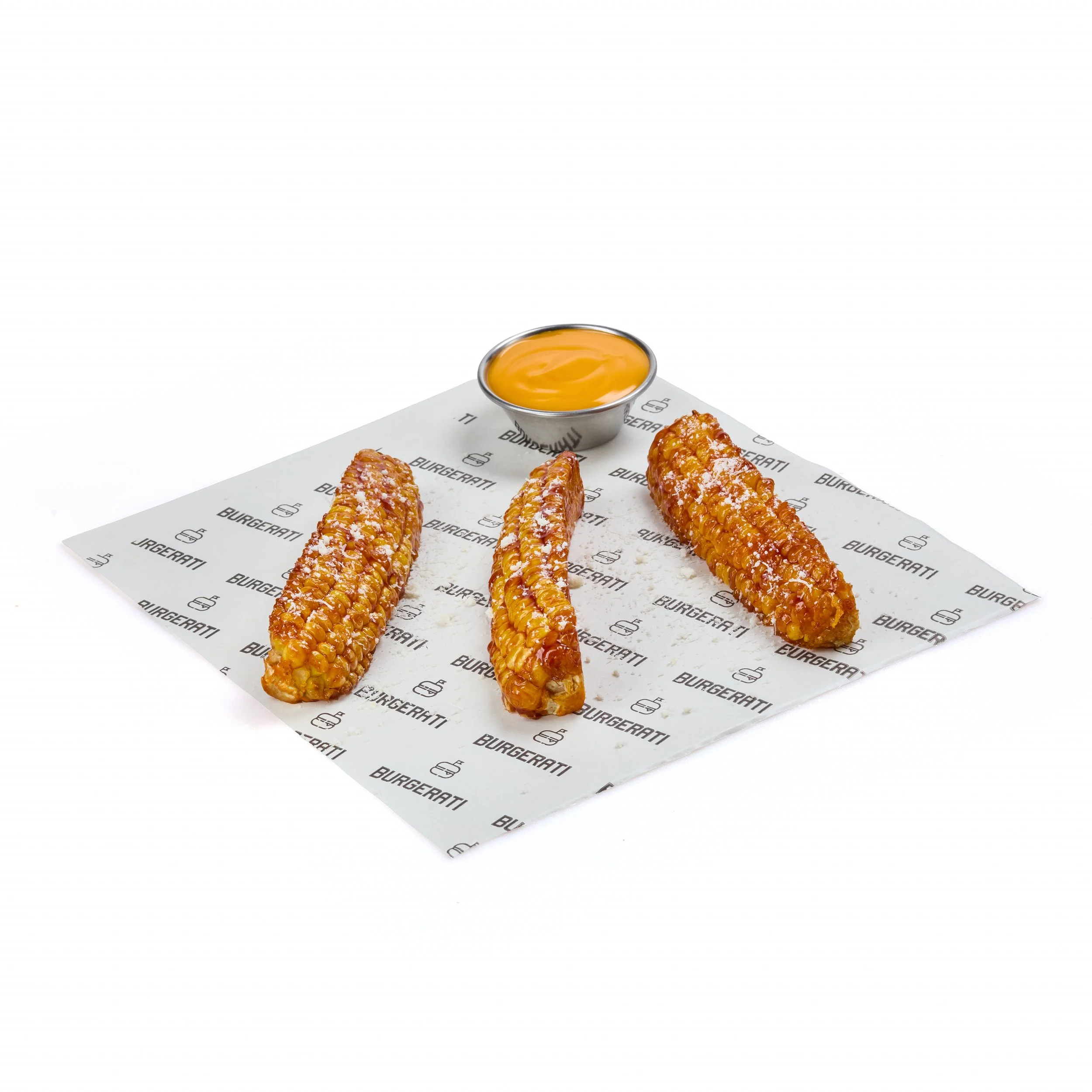 Corn ribs glazed in SPICY sauce served with cheddar. Coaste de porumb cu sos PICANT servite cu cheddar.